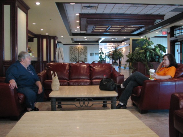 Sharon and friend in hotel lobby....